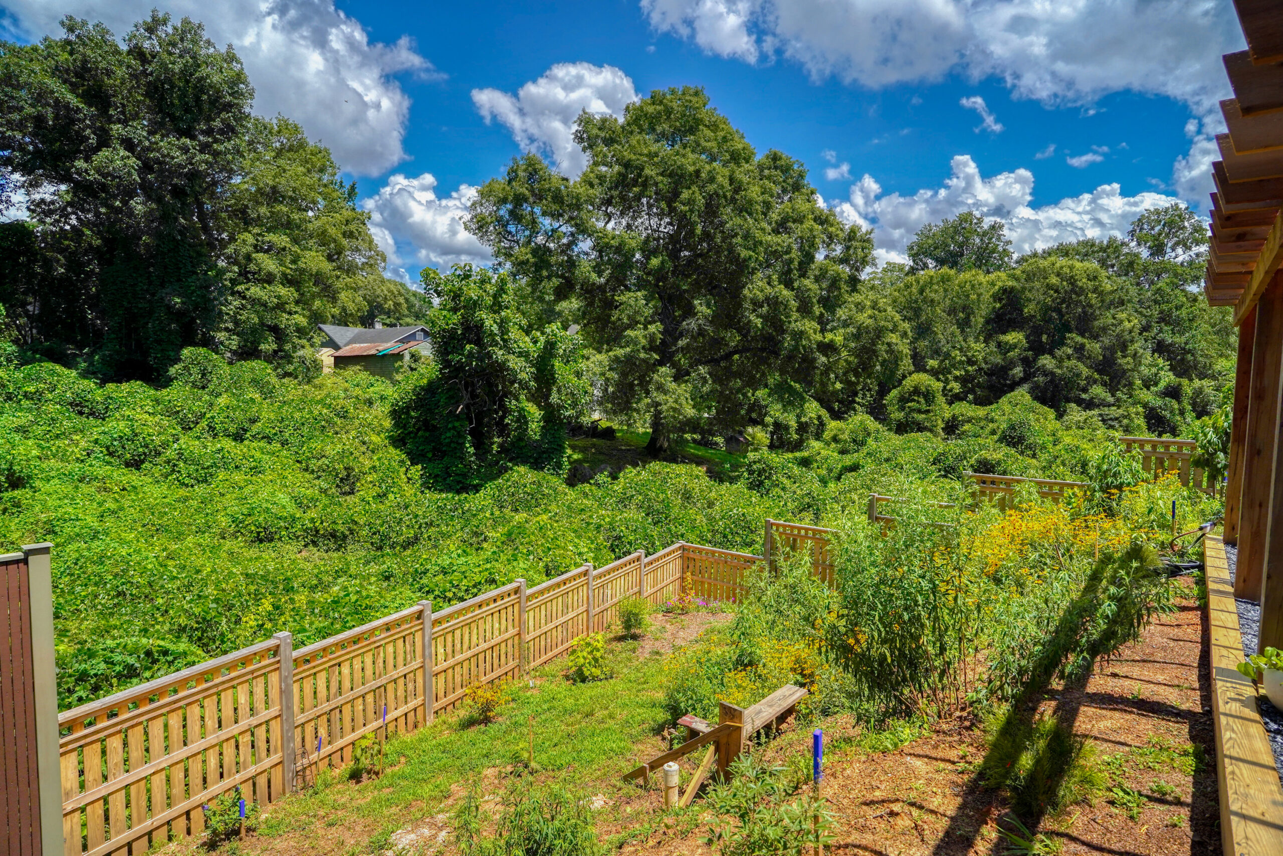 Outside, a wild front garden welcomes you with a splash of color, and the back pergola offers a shady spot to unwind under the Georgia sky. Utilities are included, and the location is walkable to the Riverwalk and the Chattahoochee.