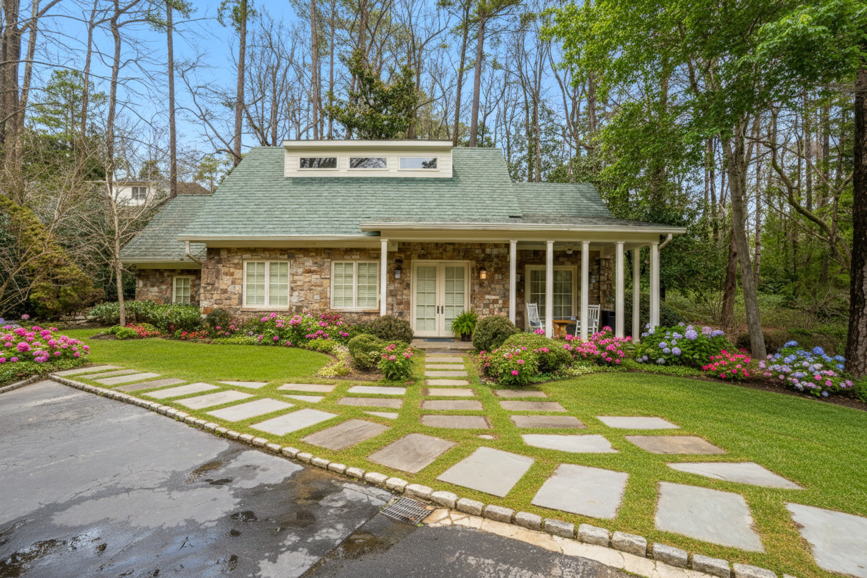 Meandering Paths: Numerous stone paths wind through the lush, nearly 3 acre property, perfect for quiet strolls through the park-like setting.