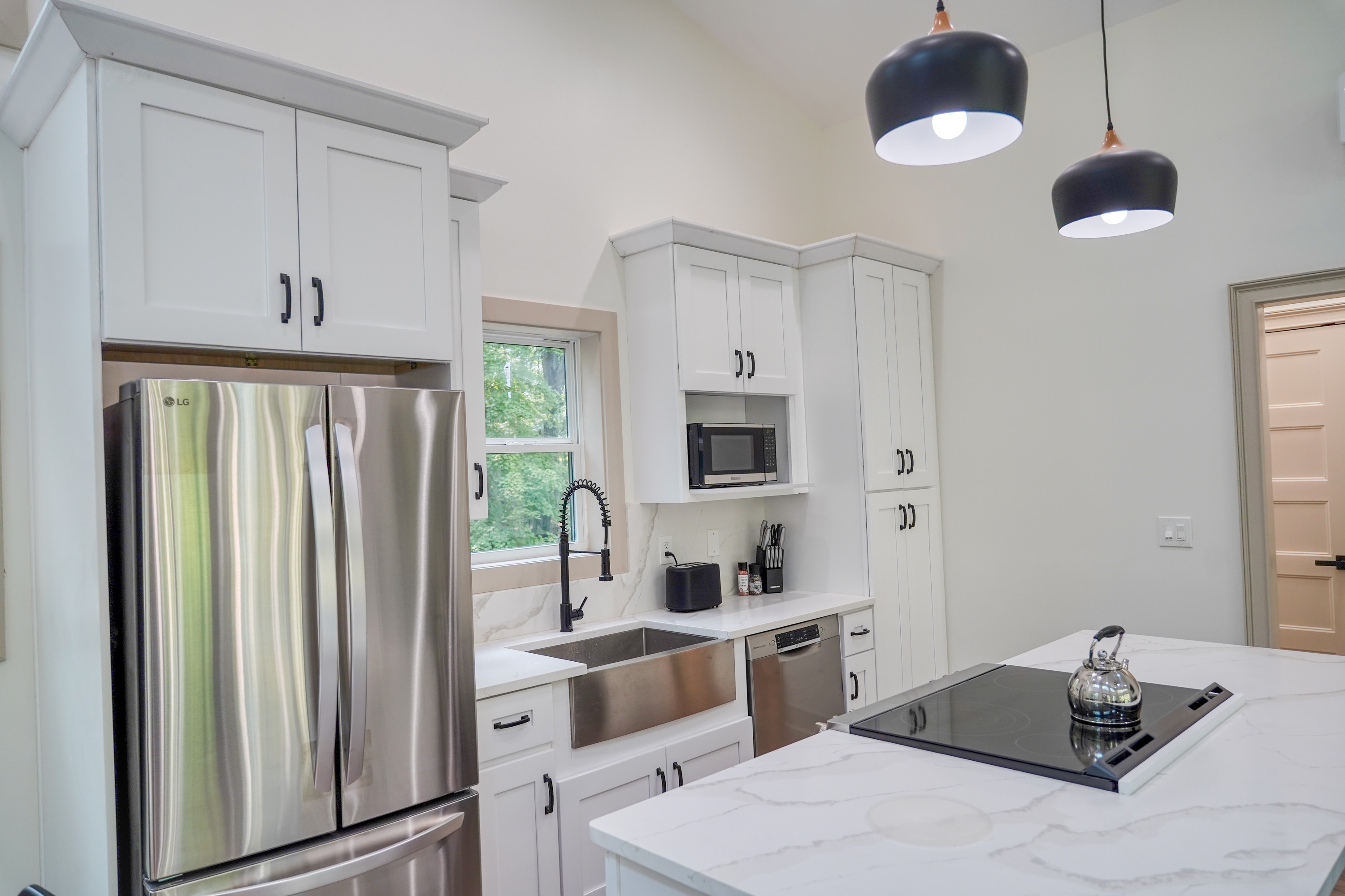 The spacious two-stall garage with soaring ceilings easily accommodates large trucks, boats, or production gear. A full bathroom on this level adds convenience.Designed for Extended Stays