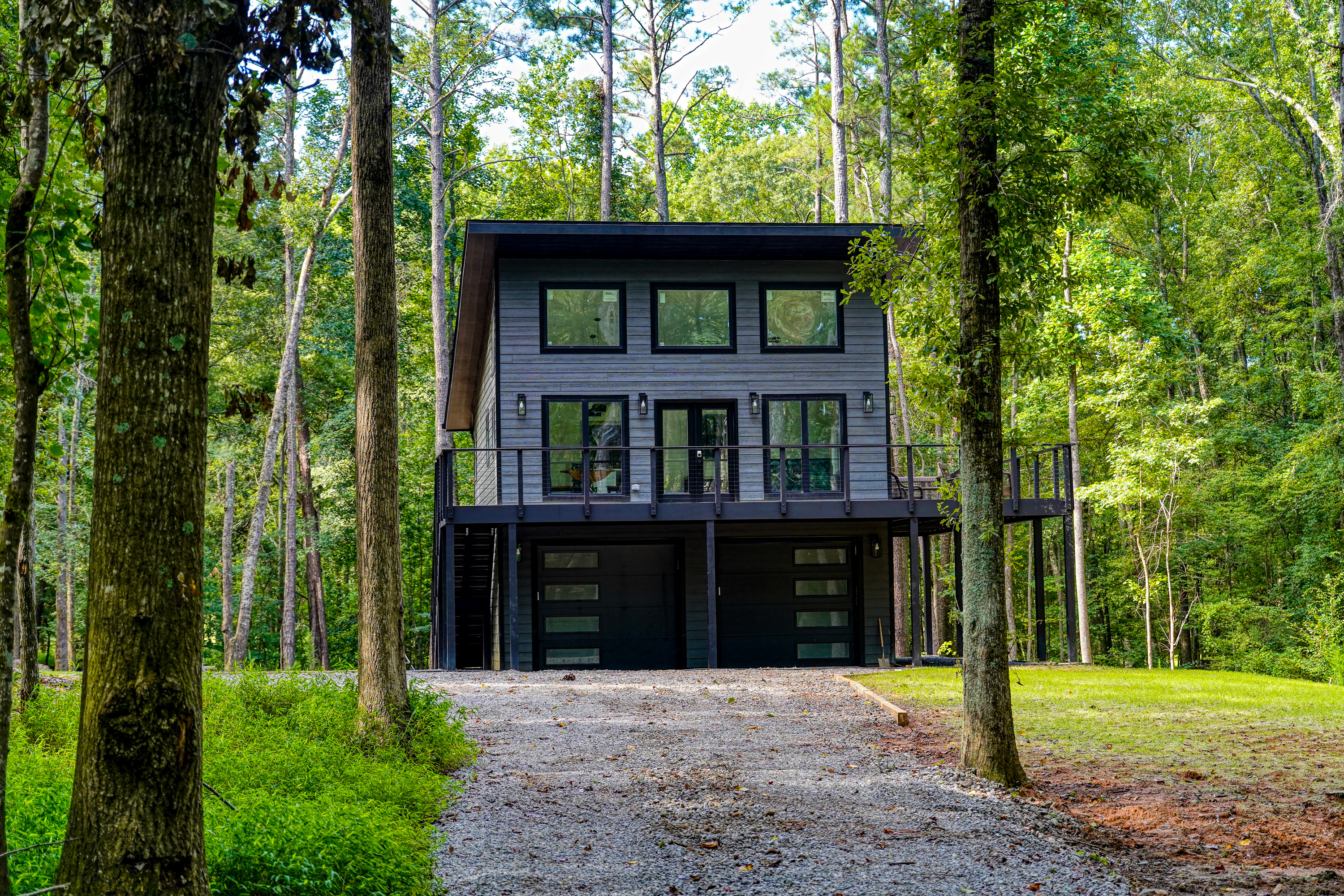 - Property Description: Discover a one-of-a-kind property where sleek modern design meets wooded serenity. Backing directly to a protected nature preserve, this brand-new home offers unmatched privacy, peaceful views, and a strong connection to the outdoors. Upper Level Step into a light-filled open floor plan with high ceilings and a seamless flow between the kitchen, dining, and living spaces. Two sets of glass doors open to a wraparound deck with ample seating. The luxurious bathroom features a double vanity, a walk-in shower with a rainfall head and side body sprayers for a spa-like experience, and a stackable laundry closet conveniently located in the hall. The serene bedroom includes a mounted TV and direct deck access, creating a private sanctuary. A custom-built firepit on the property offers a cozy spot to gather under the stars. Lower Level The spacious two-stall garage with soaring ceilings easily accommodates large trucks, boats, or production gear. A full bathroom on this level adds convenience. Designed for Extended Stays Whether you’re bringing in executives, relocating employees, or housing cast and crew, this property delivers comfort, convenience, and privacy. High-speed internet, a fully equipped kitchen, in-unit laundry, and ample parking make it perfect for long-term corporate assignments or production housing. Prime Location Just off Highway 85 for quick commutes, you’ll have easy access to Hartsfield–Jackson Atlanta International Airport and be only 10–15 minutes from Peachtree City and Trilith Studios. The location offers the best of both worlds: tranquil natural surroundings with fast access to major roads, dining, and area amenities. Minimum 1-month stay required.