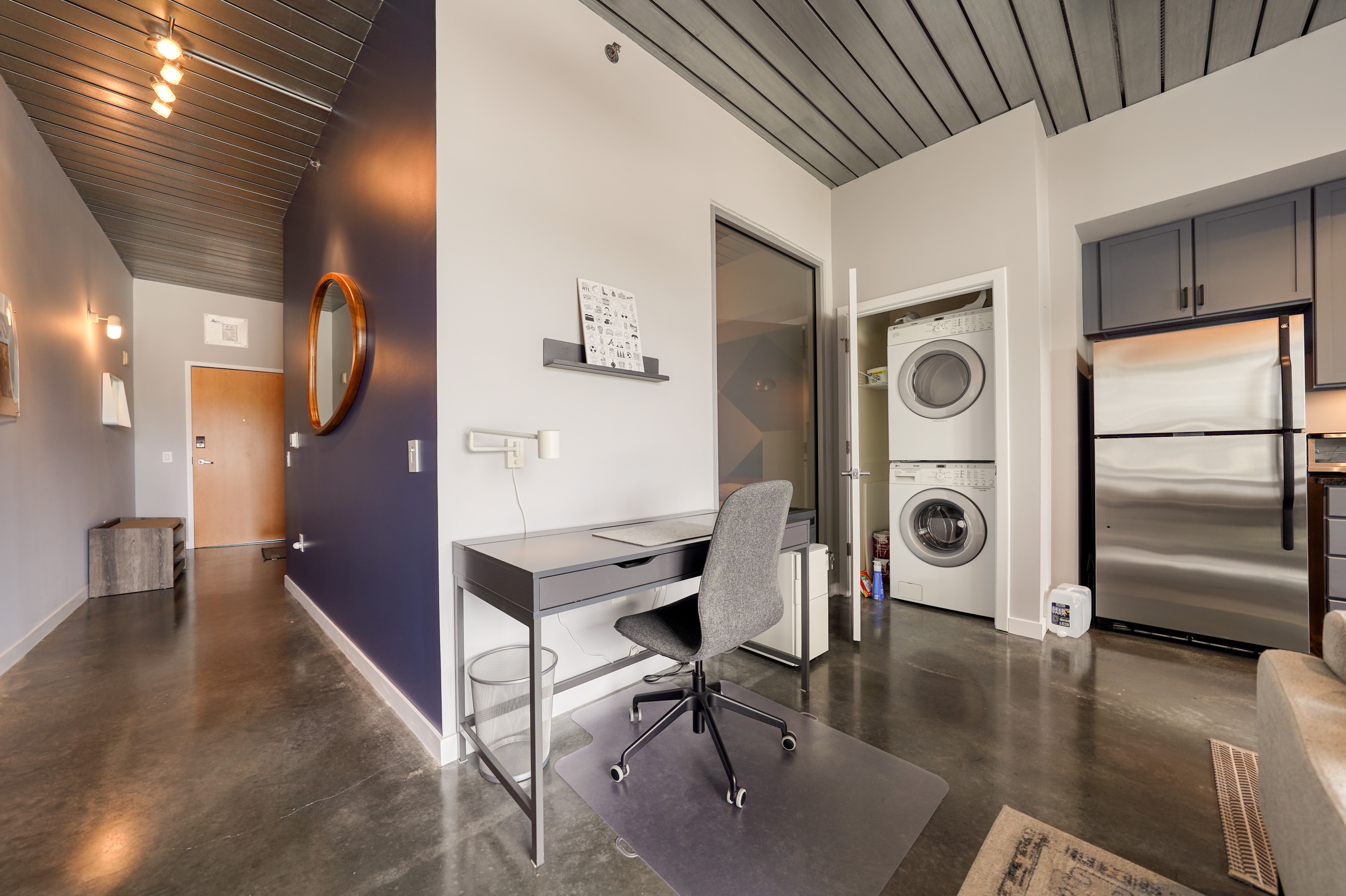 - Description: 620 Glen Iris Drive Ne - Unit 506. Experience the ultimate in intown living in this beautiful, fully furnished loft. This quiet, top-floor unit offers a private balcony and city views. At 700 square feet, this 1-bedroom, 1-bathroom space is a complete turn-key home with an in-unit washer and dryer. All utilities and high-speed Wi-Fi are included. Enjoy the convenience of a secured, designated parking space on the same floor as your unit, within a fob-entry building. The building also features a small gym for residents. Here's a concise addition that focuses on the neighborhood's unique walkability and key landmarks. This unit places you in the heart of Atlanta's most walkable neighborhood. Across the street from Ponce City Market, a vibrant hub of food, fashion, and fun, offering everything from award-winning restaurants to a rooftop amusement park with skyline views. The famous Atlanta BeltLine is also right across the street, offering a car-free path to explore vibrant shops, restaurants, and art. Just a short stroll away is the Historic Fourth Ward Park, an urban oasis with open fields, a skate park, and a lake. Enjoy a lifestyle where you can step out your door and have immediate access to Atlanta's best green spaces and urban trails. Walkable to Whole Foods, Kroger and Trader Joes!