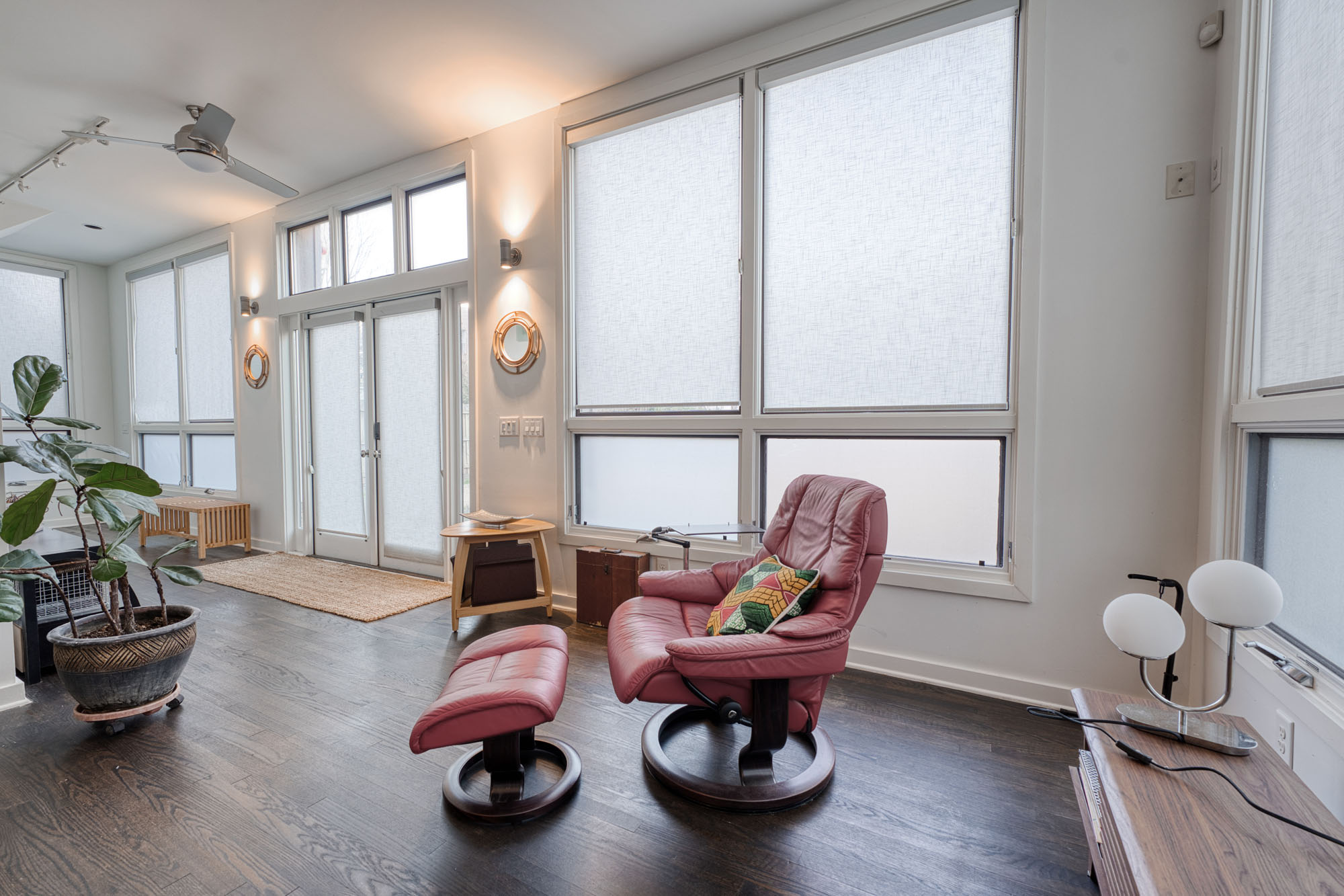 Bathed in natural light, the home features a spectacular glass sunroom that seamlessly connects the interior to a lush, flat green backyard—a rare find in the city. The spacious layout includes a cozy living room and a dedicated separate office space, ideal for remote work or creative projects.