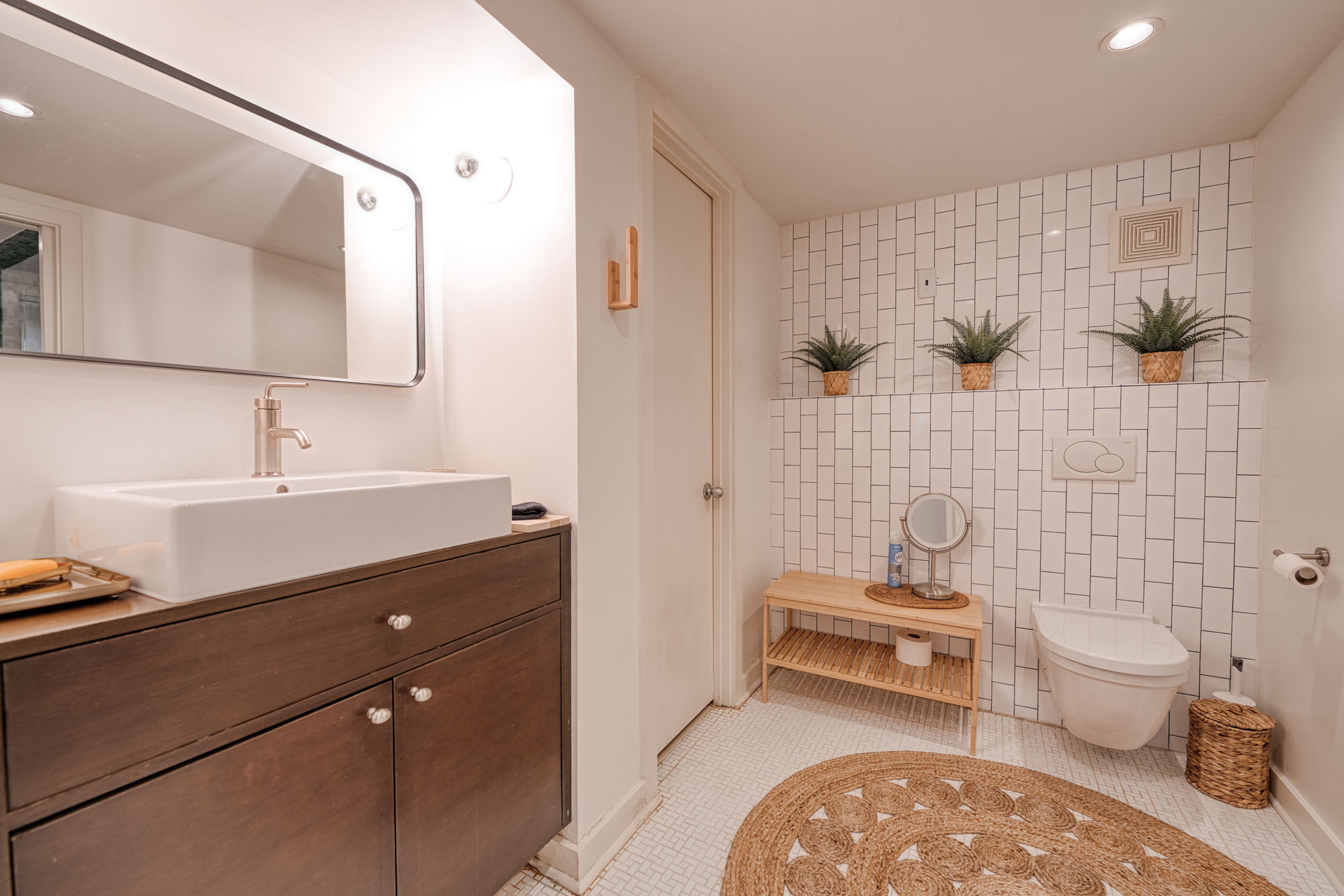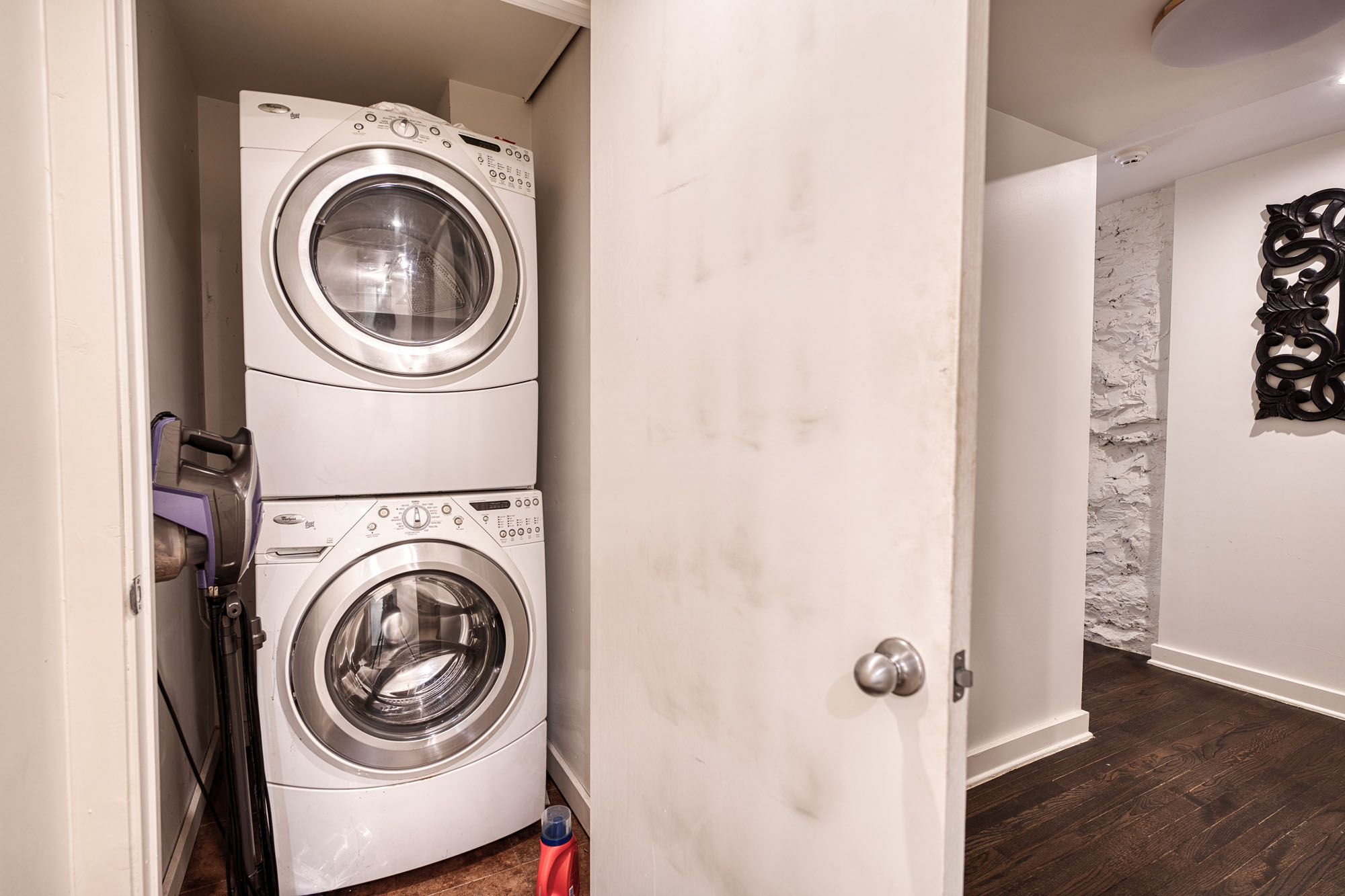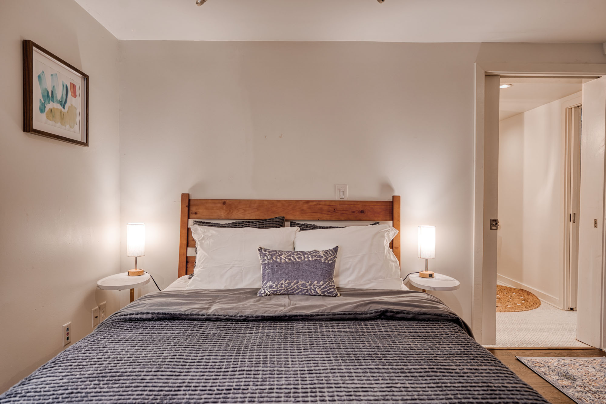 This fully furnished duplex unit opens directly onto the manicured lawn and offers easy street parking. For those seeking more space, this unit can be combined with the upstairs residence to create an expansive 4-bedroom, 2-full-bath, and 2-half-bath home.