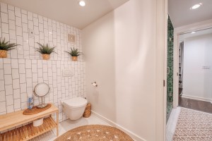 Culinary enthusiasts will love the large kitchen, complete with a cozy eat-in dining nook and gas cooking. For added convenience, a separate butler’s pantry houses the dishwasher and an additional sink, providing ample prep and storage space. The two bedrooms are connected by a cleverly designed shared bathroom featuring a large walk-in shower with separate toilet and sink areas for maximum privacy.